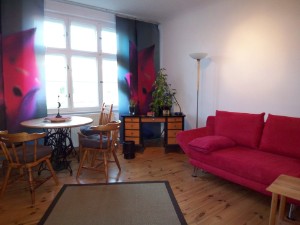 hell, mit großem Fenster nach Süd-Westen. Gemütlich möbliert, außer einem 2-Sitzer Sofa gibt es noch ein Schlafsofa mit einer Liegefläche von 150 x 200 cm. Kabel-TV