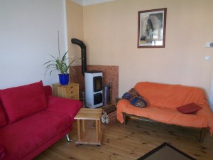 Im Winter kann zusätzlich zur Heizung der Kaminofen genutzt werden.